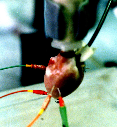 rhythms are recorded. VF may be induced to the heart model by means