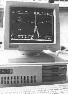 The system is able to record and calculate the high-resolution signal averaged XYZ vector magnitude. This signal is beieved to give a generalized idea of the late stage of the depolarization process of the myocardium. If the so called "late potentials" (fractionation of the depolarization front due to the existence of tissue with altered propagation properties) are present, the XYZ vector magnitude decays more slowly during the late QRS complex. Our computer system displays the high resolution ECG of a normal patient and a patient with late potentials (hard copy of the computer screen). Along with other helpful information, the three standard parameters for time-domain analysis are displayed: 1) QRS duration; 2) V40(=RMS40=the root mean square voltage of the terminal 40 ms of the QRS complex in microvolts); and 3) LAS (the duration in ms of the low amplitude signal after sinking below 40 microvolts and before QRS offset). The QRS ends abruptly with a normal subject, and is decaying slowly in patients who are prone to VT. The system was tested on 30 post MI-patients, 4 of them with VT, and delivered very good results [7].