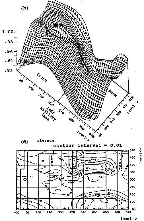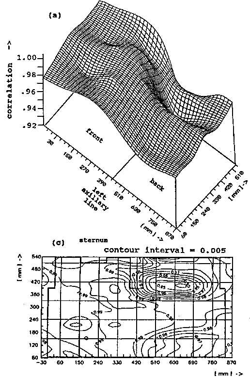 Spatial distribution of the the time domain cross-correlationsbetween QRS complexes of one and the same patient