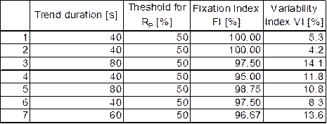 The duration of the trend can be freely selected. Although the duration of the examination can be virtually endless, our experience shows that using assessment times longer than one minute are not suitable, because the subject’s ability to concentrate drops as the test progresses. For the ADHD study we used a duration of 40 s.