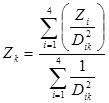 In this equation, Z is the final interpolated correction value for either X or Y. This method is faster and computationally simpler than the spline interpolation, while yielding satisfactory results.