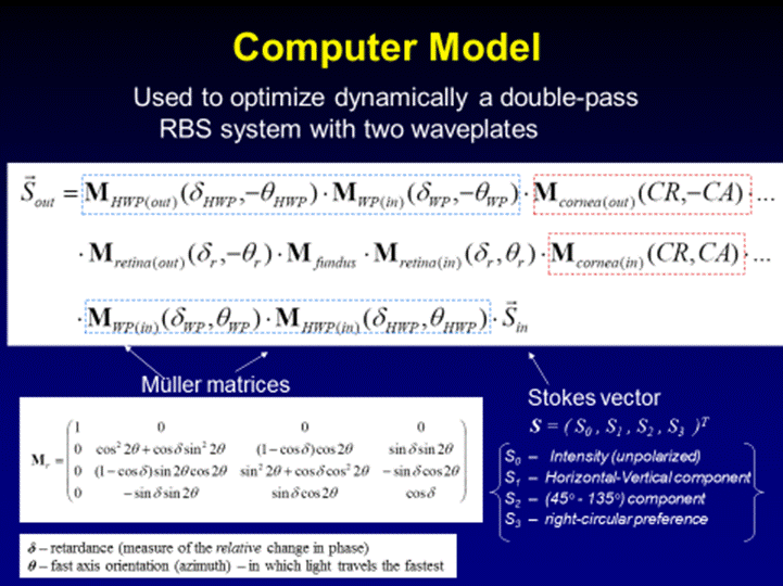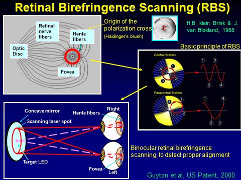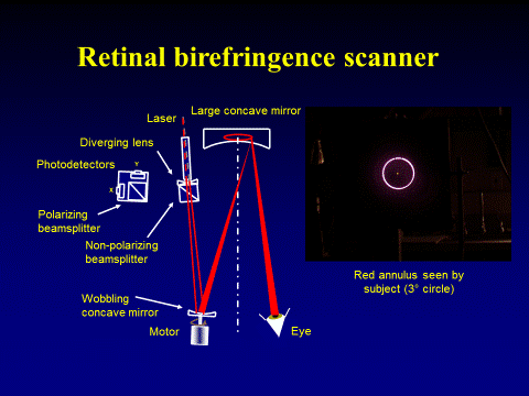 Polarized light is widely used in optical systems for various purposes. Our retinal birefringence scanning systems measure the property of parts of the retina to change the polarization state of light, which is called “birefringence”.